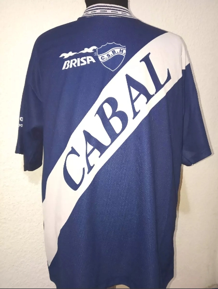 Camisetas titular y alternativa. Sponsor tƩcnico: Brisa. Publicidad: Tarjeta Cabal. (Foto enviada por Felipe Bailetti).